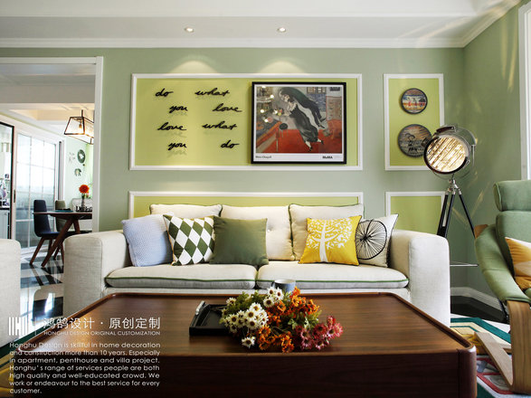 用丰富的色彩替代了复杂的背景墙,整个搭配的重心在软装上,随意自由、温馨活跃构成了本案的主线。