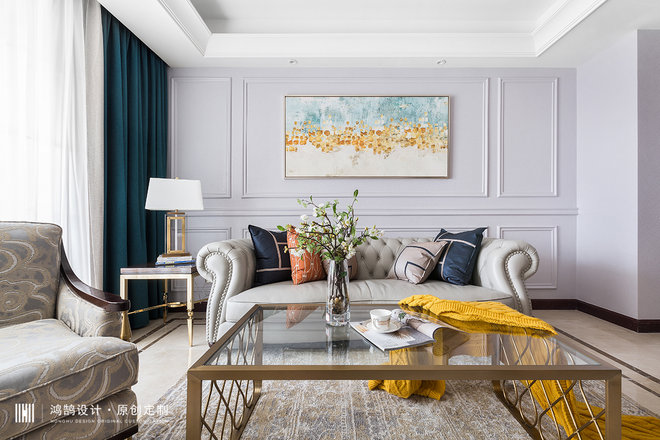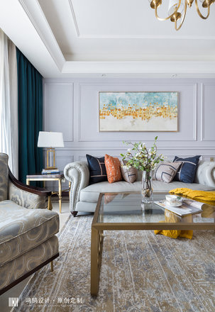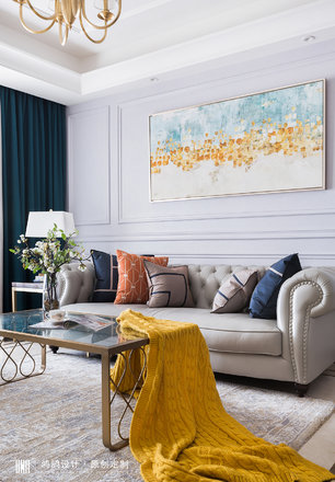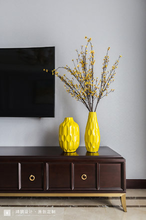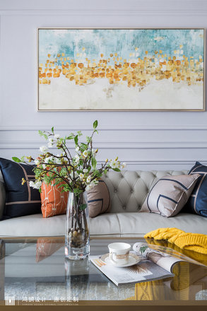 客厅的整体颜色,是通过黄色和金属质感的装饰来打破空间的沉闷感。整体氛围比较明亮,清爽,颇具品质感。
