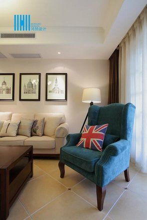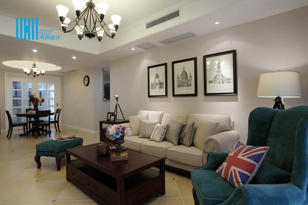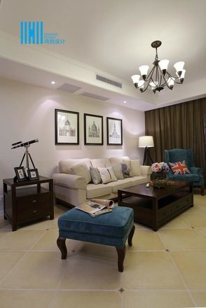 客厅:现代人更崇尚一种简单的有品质的生活方式,因此简约美式也让大多数人喜爱,这里,简单的造型,稍显品质的家具加上,宁静而内敛的米黄,稍加点缀的蓝色给整个夏日空间降降温。