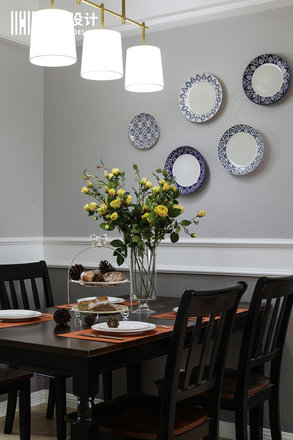 设计师将业主喜爱的大地色融合其中,用墙面渐变的处理方式,搭配简约的美式家具让整体氛围即低调又精致