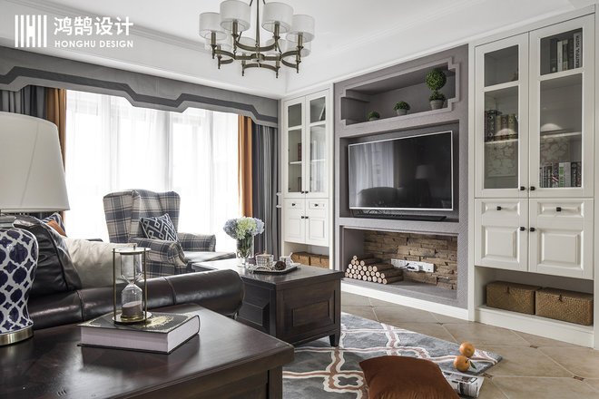 三代同堂,对于空间的实用性是非常重视的,客厅里,电视机没有用传统的背景墙的方式处理,而是将置物柜体连接墙体,将电视机嵌入,既满足了业主对于储物的要求,也让整体的美观度多了一份精致。