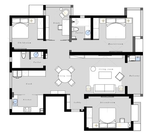之前的户型,厨房比较狭长,利用率低,餐厅外面的阳台没有充分利用起来,房间分割比较细碎,客餐厅采光不足