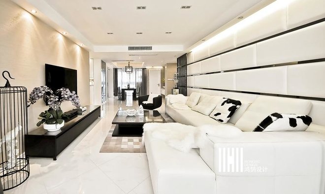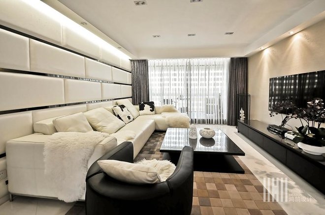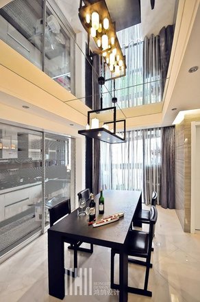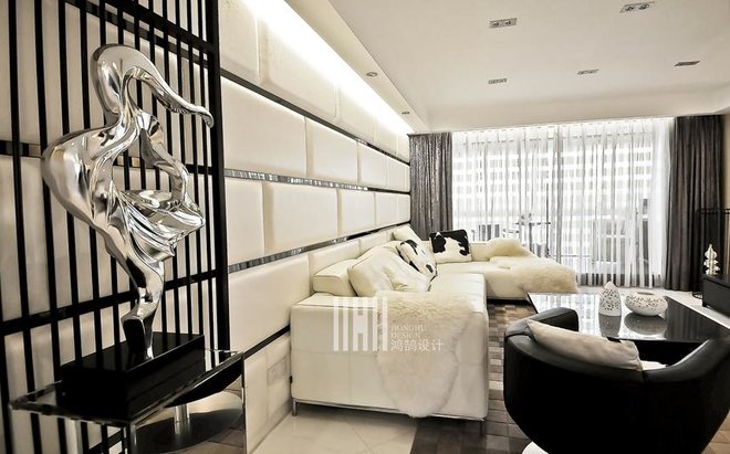 在这个摩登意味的空间里,你找不到那种为了装饰作用贴着墙顶角,似波浪游走的石膏线条。当然没有那些看似需要大量手工作业才能成型的装饰物或结构。线条简洁化,你能直观到的是一种硬朗的基调。