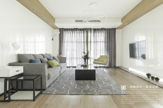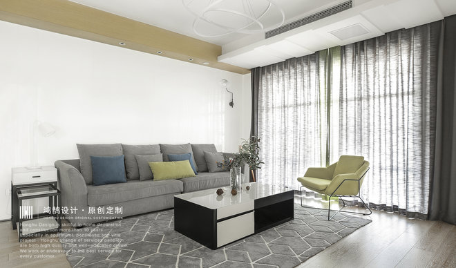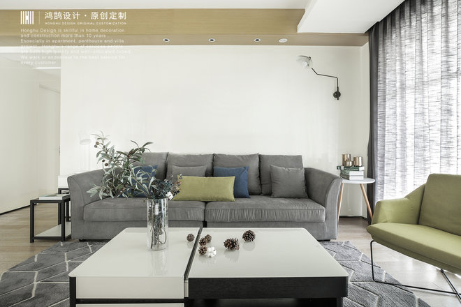至静至白的空间,设计师运用原木和白色高光护墙板等手法去表现。灰色的布艺沙发,看似不经意,却恰到好处的表现了整个动态空间的温柔时光