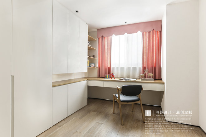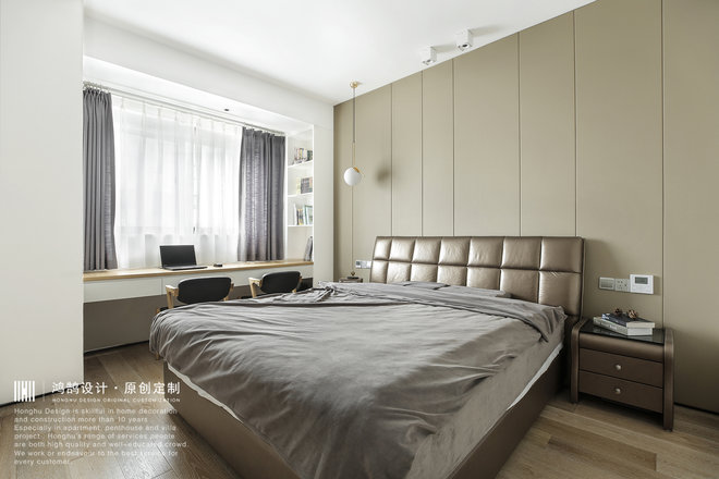 男女业主从事的行业经常有时差,本案例中,设计师将书桌与卧室连接,既节省了空间,也满足了业主的需求。