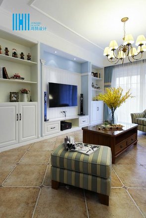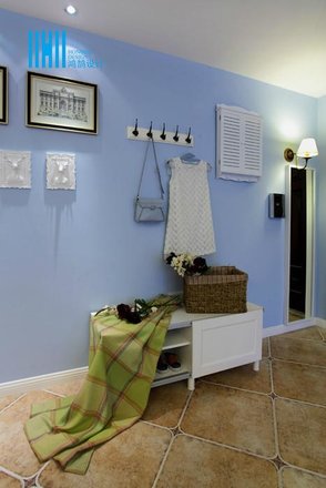 把鞋柜和电视背景结合在了一起,这样有了合理的鞋柜空间,使电视背景更加整体美观大方,增加了储物功能。