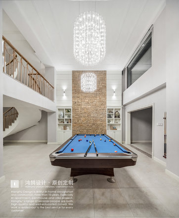• 设计理念:将一层和地下室都作为公共区域来布置,会客、用餐、喝茶、桌球、棋牌、影音、酒窖、健身、储物等一应俱全。