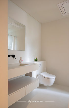 拆除储物间,增大卫生间和次卧的空间。 利用微水泥打造全屋墙面,利用隐形门增加空间的整体性。