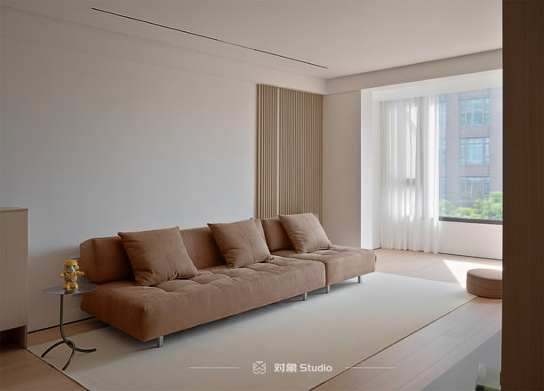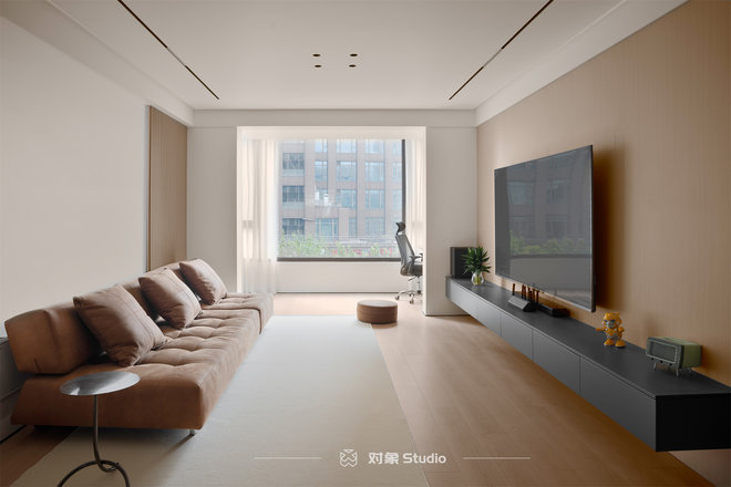 户型南北通透,采光很好。运用超大窗墙比,把优势发挥到极致,不浪费一点阳光。色彩有明暗、深浅层次的变化,才不会造成审美的疲劳。