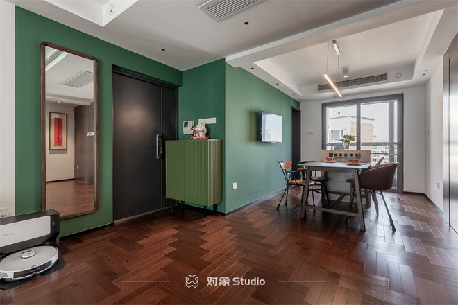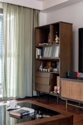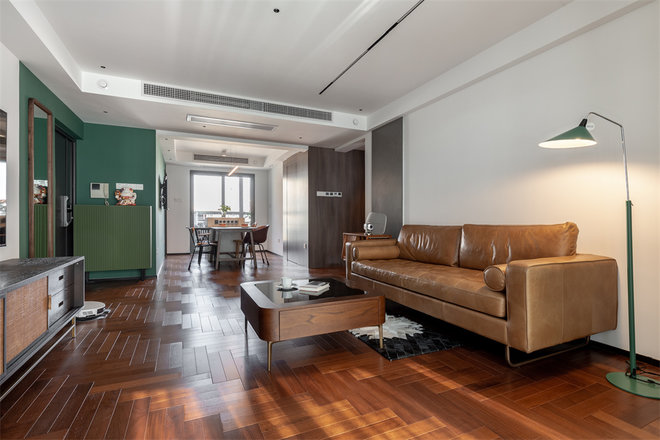 多色调混搭,深原木混搭现代风格,无主灯设计。