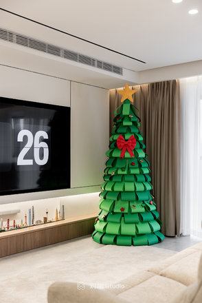 屋主人是一家三口,夫妻二人非常恩爱,经常会邀请朋友来家聚会做客,对于大客厅大餐厅的开阔感的追求很执着