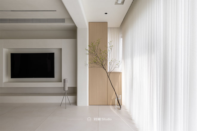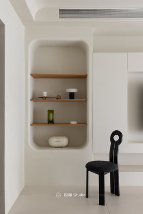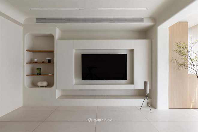 | 客厅 | 电视背景 | 兔宝宝欧松板基层、微水泥 | 阳台弧形门垛 |