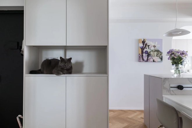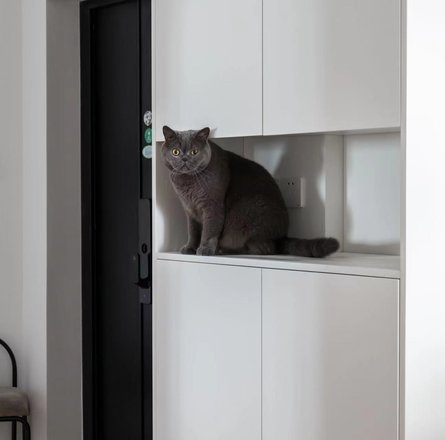 业主是一对夫妻,有只蓝猫。户型又点歪,南北不通透。