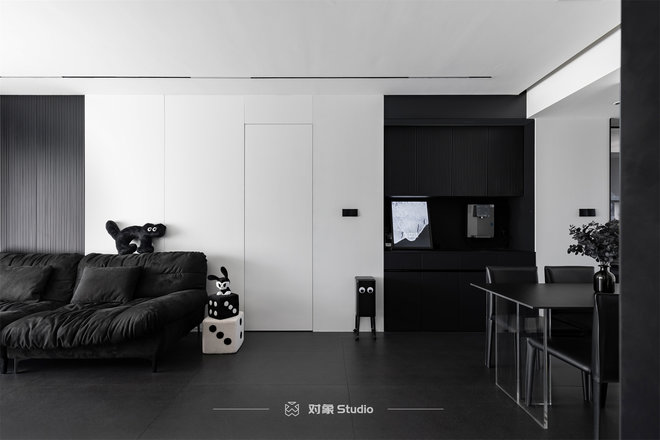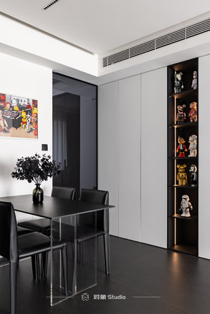 偏爱黑白配色,屋主人拥有一颗充满童趣的心,他们热衷于收集各种手办。