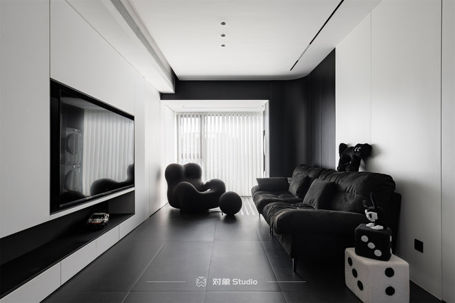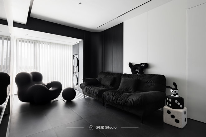 不要再被单调的白色所束缚,尝试选择黑色系的室内设计,你将成为空间中的绝对主角!搭配心爱的玩偶,让空间充满灵动和趣味,展现出十足的“潮”范。