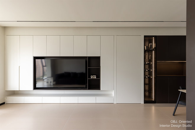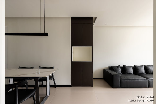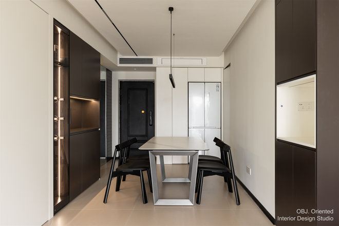 采用了极简的设计风格,配色采用了黑白配色。并在基础上增加了储物收纳。