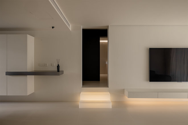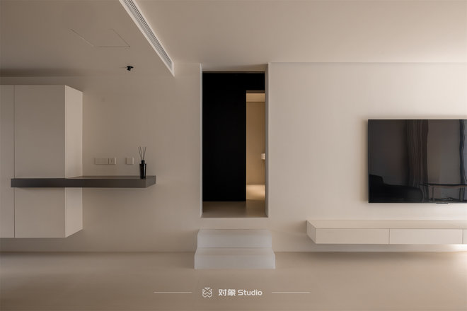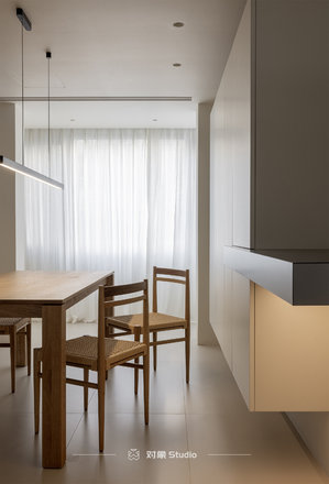 本案遵从“少即是多”的设计理念,以纯净无暇的奶白色为主色调,打造出宽敞明亮清新雅致的生活空间。