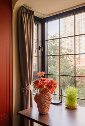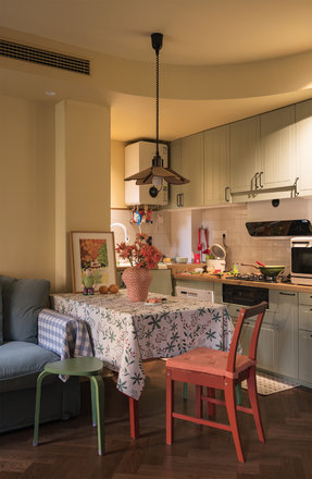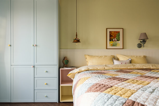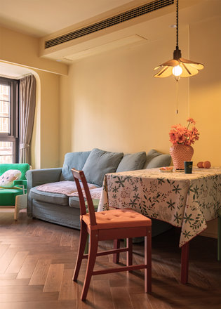 打造这个小空间的时候,我们没有使用惯用的极简空间的思路,反其道而行,尽可能将空间填满。给予屋主人足够的包裹感,充实感,温馨感,满足感。