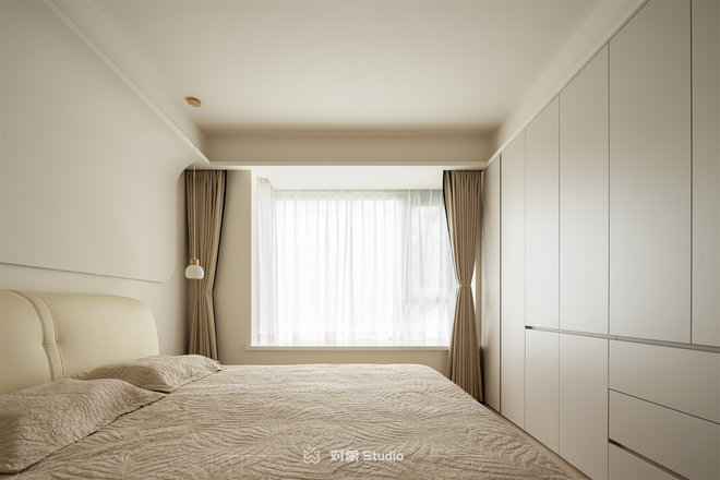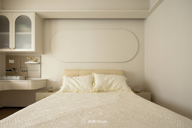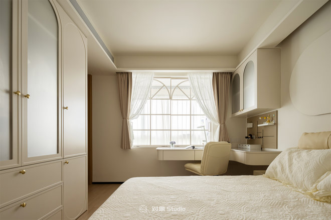 以奶白色为主基调,营造出一种纯净而高雅的氛围聚焦于卧室的套房式设计与收纳、功能空间的极致优化