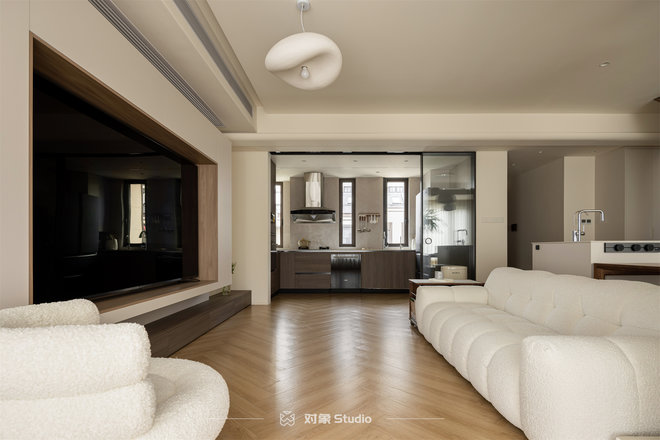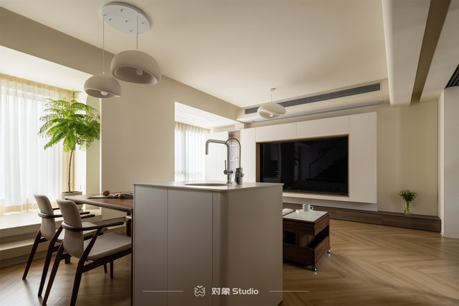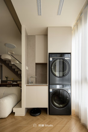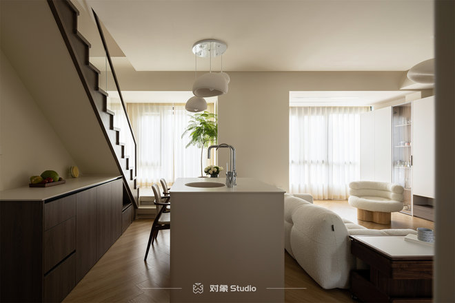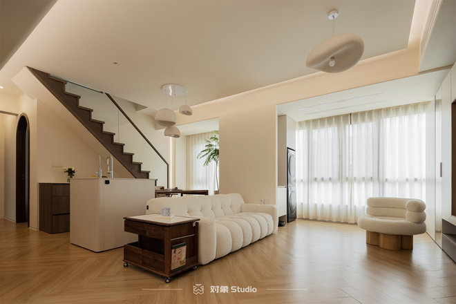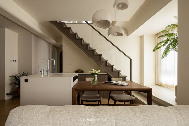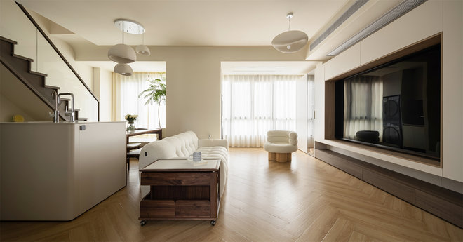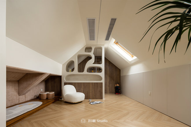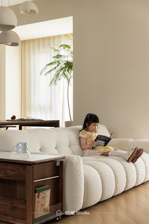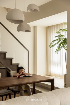 极简+复古风,三口之家,设计师充分考虑了每位家庭成员的生活以及娱乐空间划分。