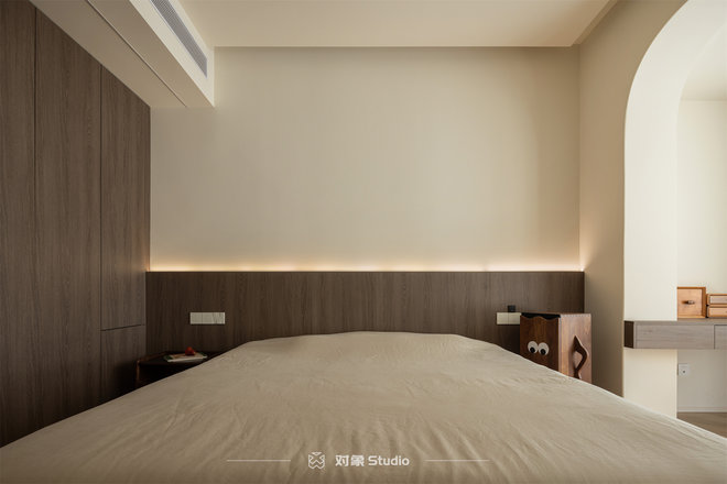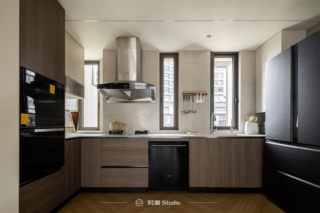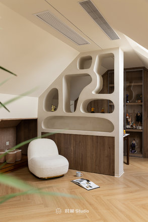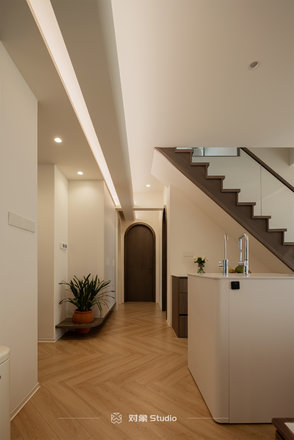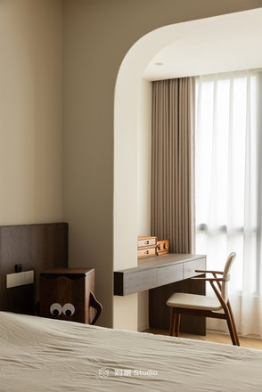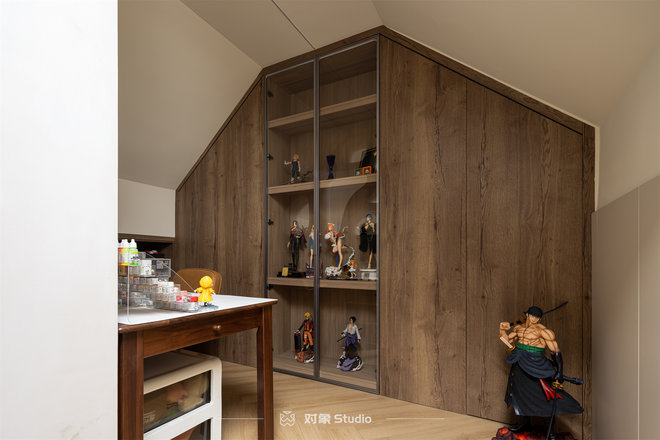 喜欢简约的复古风,女业主想要一个大大的衣帽间,男业主喜欢手办,需要考虑到他的办公空间。厨房空间过小