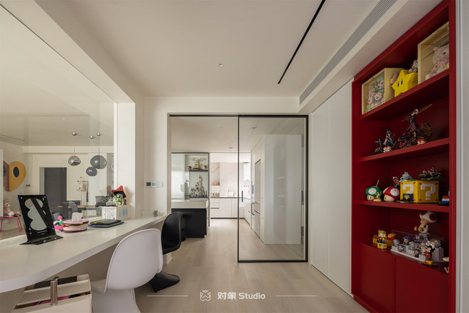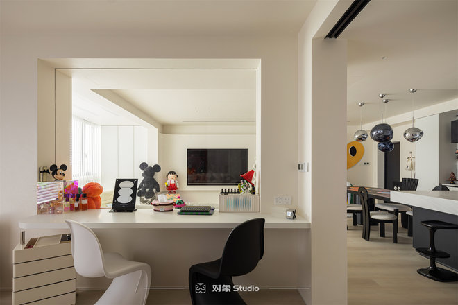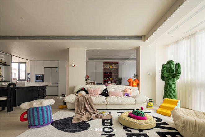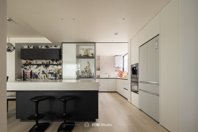 客餐厅完美融合,共同构建出一个无比开阔的共享空间。大横厅客餐一体,家庭互动感真的很好。