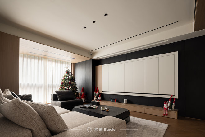 我们采用了无主灯设计,顶面结合大面积氛围光源,线性灯带;磁吸轨道;内藏灯带;壁灯; 吊灯; 射灯,多种情景模式,每个不同生活状态,氛围感直接拉满。