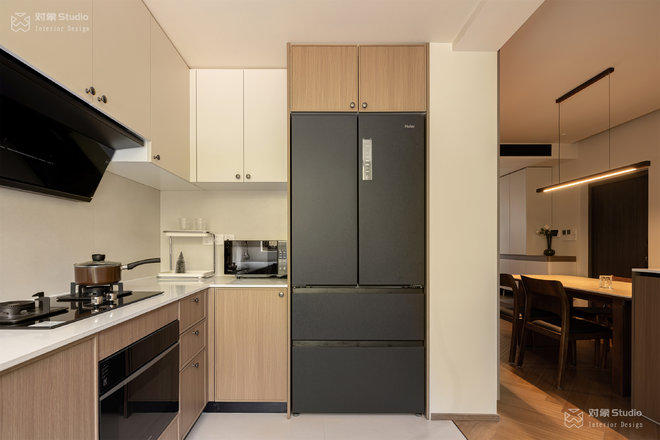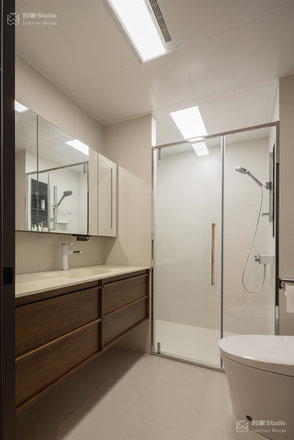 巧妙敲除非承重墙:向卫生间借空间,嵌入多功能餐边柜增加收纳空间。