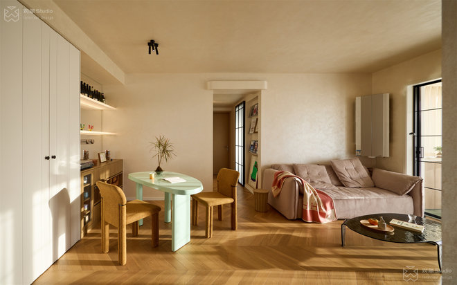 100平法式松弛感,全屋艺术漆