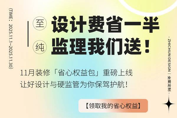 「设计费5折」与「第三方监理」,11月装修「省心权益包」重磅上线,让好设计与硬监管为你保驾护航!