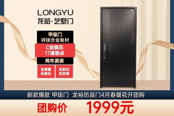 龙裕艺墅门/防盗门4月春暖花开团购,甲级门+C级锁=1?99/樘起
